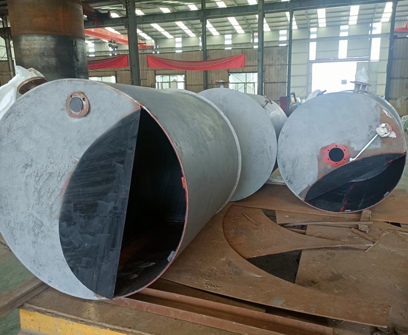 一、結(jié)構(gòu)和形狀在滿足實(shí)用功能的條件下需要盡量簡單,從而為襯膠設(shè)備施工、安裝和檢修提供良好的條件,作為襯膠層需要100%與鋼殼體貼合,而結(jié)構(gòu)復(fù)雜會無法保證膠板滾襯的質(zhì)量。另外還應(yīng)考慮硫化時(shí)冷凝水的排放,增加必要的接管。在硫化膠板時(shí),如冷凝液不能夠及時(shí)排放而積存在襯膠里,將導(dǎo)致該處的膠板硫化度不夠,從而影響膠板本身的性能和膠板與基體的粘接性能,這對于設(shè)備來說也是一個(gè)失效的因素。